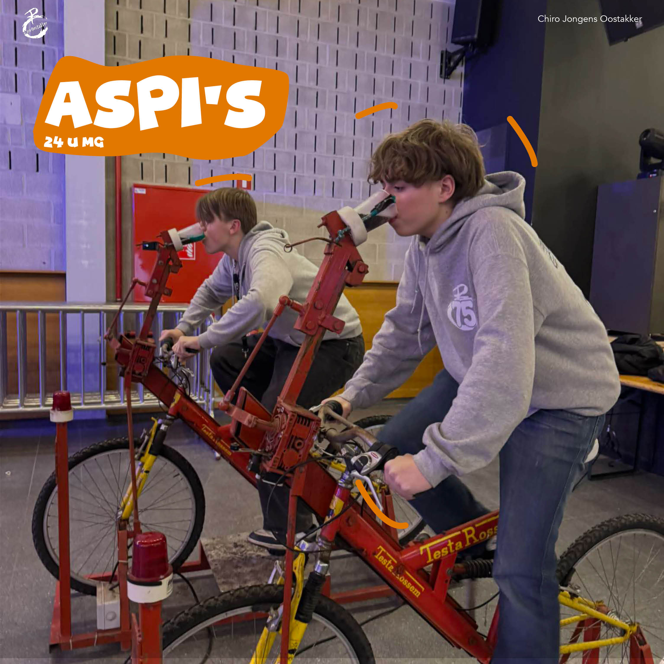 De Aspi's zijn jongens uit het 5de en 6de middelbaar. Elke zondag is er Chiro van 14u tot 19u30, het hele jaar door. De Aspi's hebben midweek, waarin ze een geweldige tijd op de Chiro beleven, en gaan op kamp van 18 tot 30 juli. Ze reizen naar het kampterrein door te fietsen of te liften, wat zorgt voor extra avontuur! Daarnaast staan er zeer leuke activiteiten op het programma doorheen het jaar. Zin om mee te doen? Kom gerust eens langs!